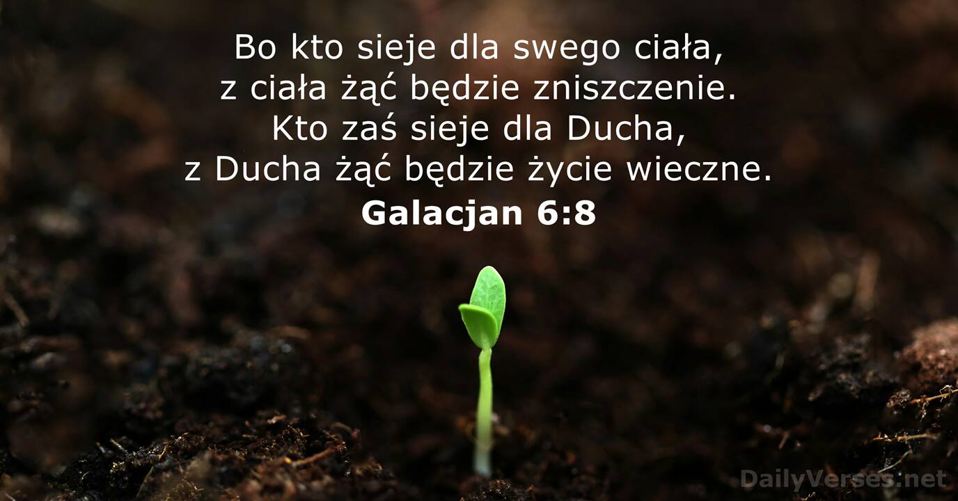 Bo kto sieje dla swego ciała, z ciała żąć będzie zniszczenie. Kto zaś sieje dla Ducha, z Ducha żąć będzie życie wieczne.