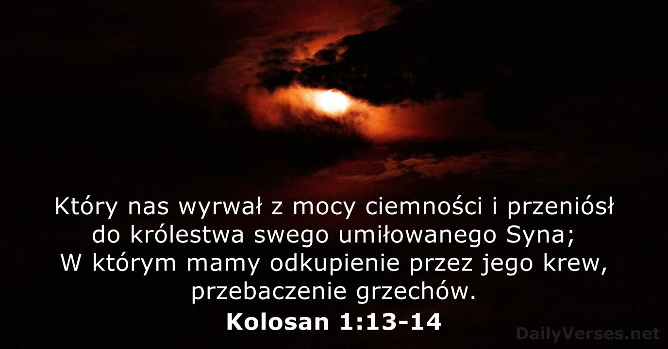 Który nas wyrwał z mocy ciemności i przeniósł do królestwa swego umiłowanego Syna; W którym mamy odkupienie przez jego krew, przebaczenie grzechów.