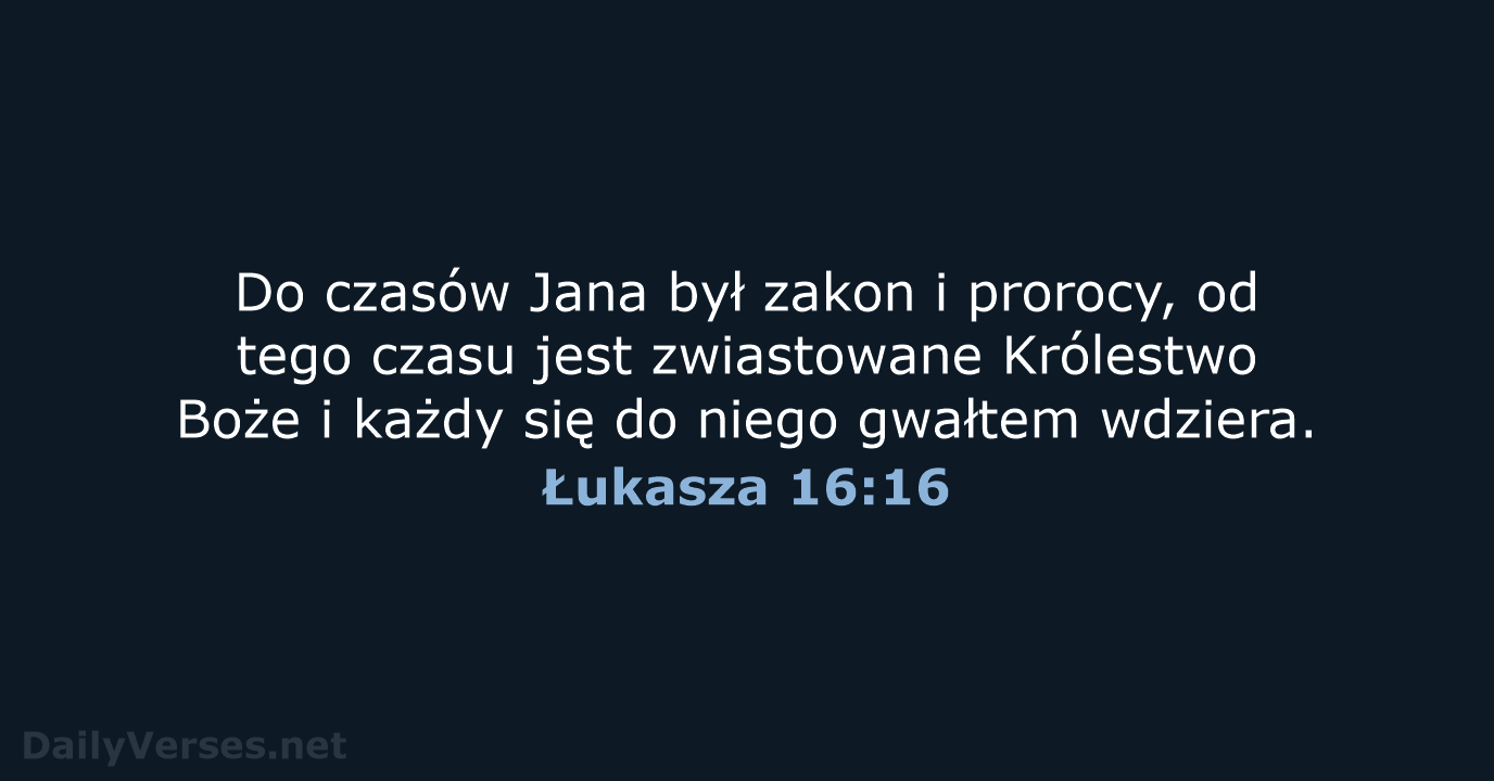 - Do czasów Jana był zakon i prorocy, od tego czasu jest zwiastowane Królestwo Boże i każdy się do niego gwałtem wdziera.