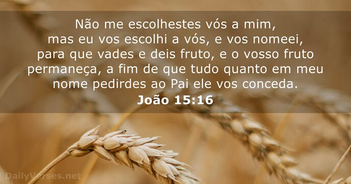 Não fostes vós que me escolhestes a mim; pelo contrário, eu vos escolhi a vós outros e vos designei para que vades e deis fruto, e o vosso fruto permaneça; a fim de que tudo quanto pedirdes ao Pai em meu nome, ele vo-lo conceda.
