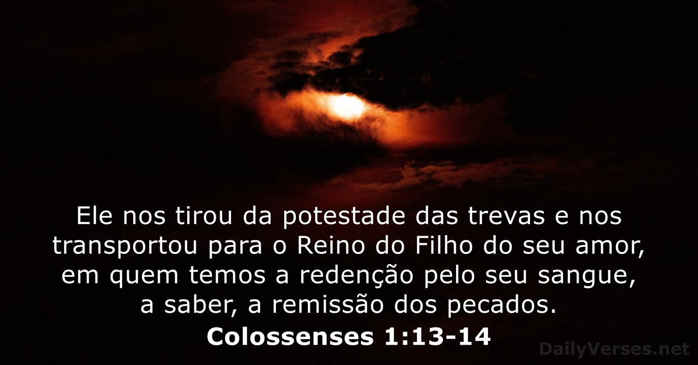 Ele nos libertou do império das trevas e nos transportou para o reino do Filho do seu amor, no qual temos a redenção, a remissão dos pecados.