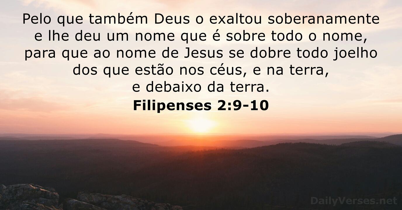 Pelo que também Deus o exaltou soberanamente e lhe deu um nome que é sobre todo o nome, para que ao nome de Jesus se dobre todo joelho dos que estão nos céus, e na terra, e debaixo da terra.