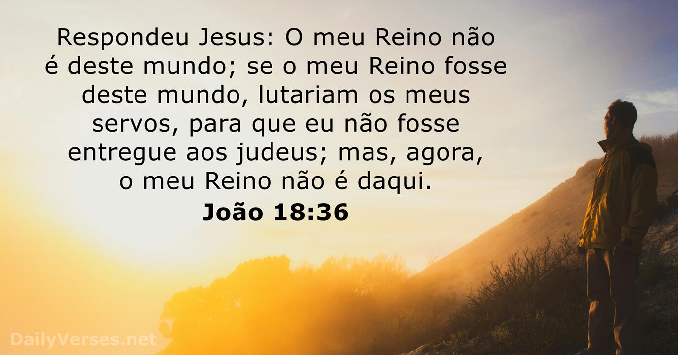 Respondeu Jesus: O meu Reino não é deste mundo; se o meu Reino fosse deste mundo, lutariam os meus servos, para que eu não fosse entregue aos judeus; mas, agora, o meu Reino não é daqui.