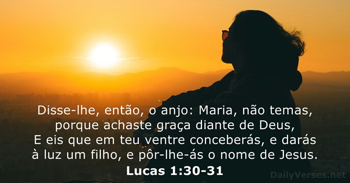 Mas o anjo lhe disse: Maria, não temas; porque achaste graça diante de Deus. Eis que conceberás e darás à luz um filho, a quem chamarás pelo nome de Jesus.