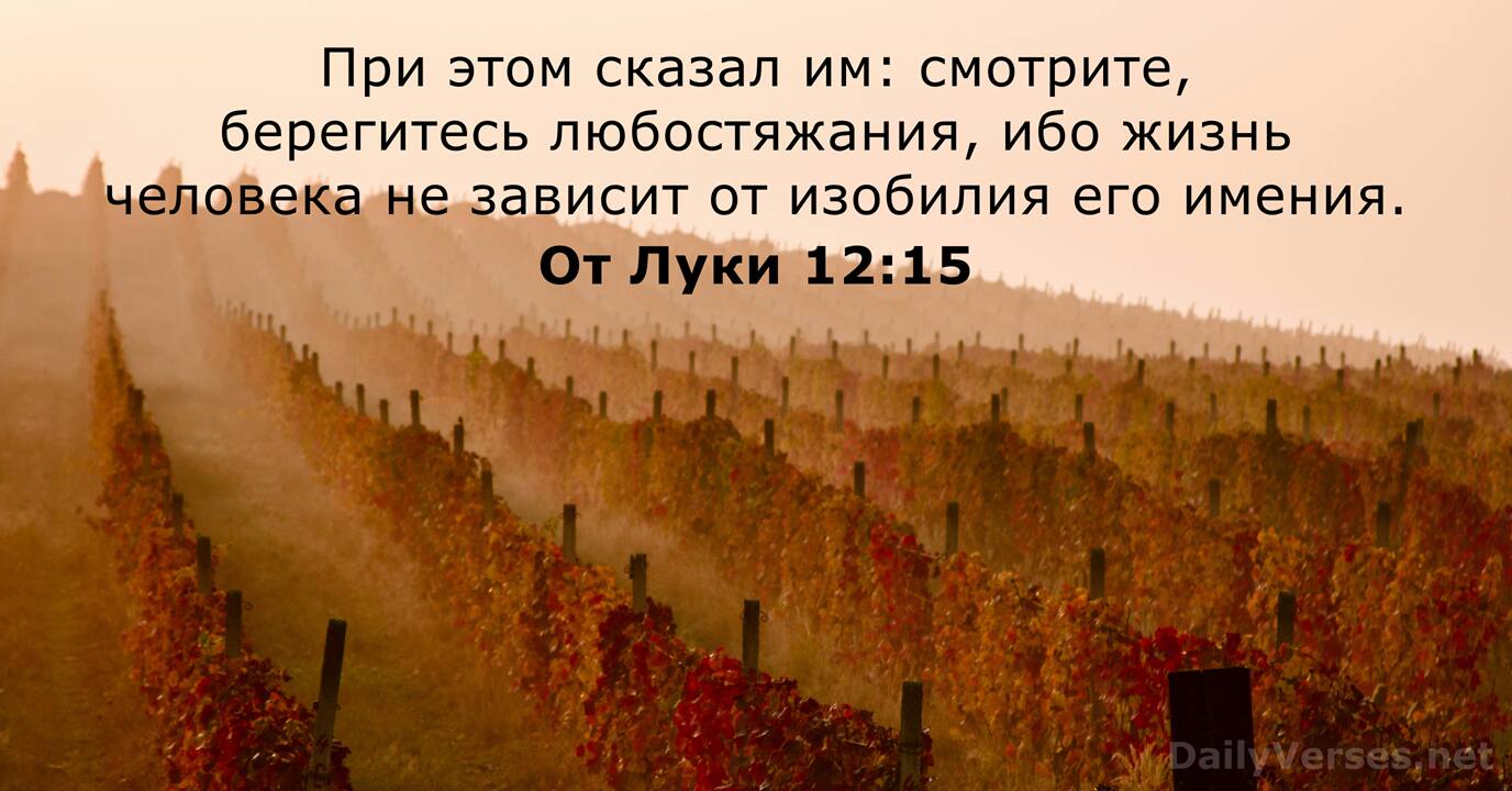 При этом сказал им: смотрите, берегитесь любостяжания, ибо жизнь человека не зависит от изобилия его имения.