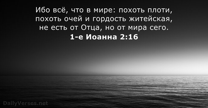 Ибо всё, что в мире: похоть плоти, похоть очей и гордость житейская, не есть от Отца, но от мира сего.