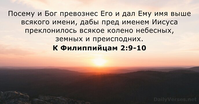 Посему и Бог превознес Его и дал Ему имя выше всякого имени, дабы пред именем Иисуса преклонилось всякое колено небесных, земных и преисподних.