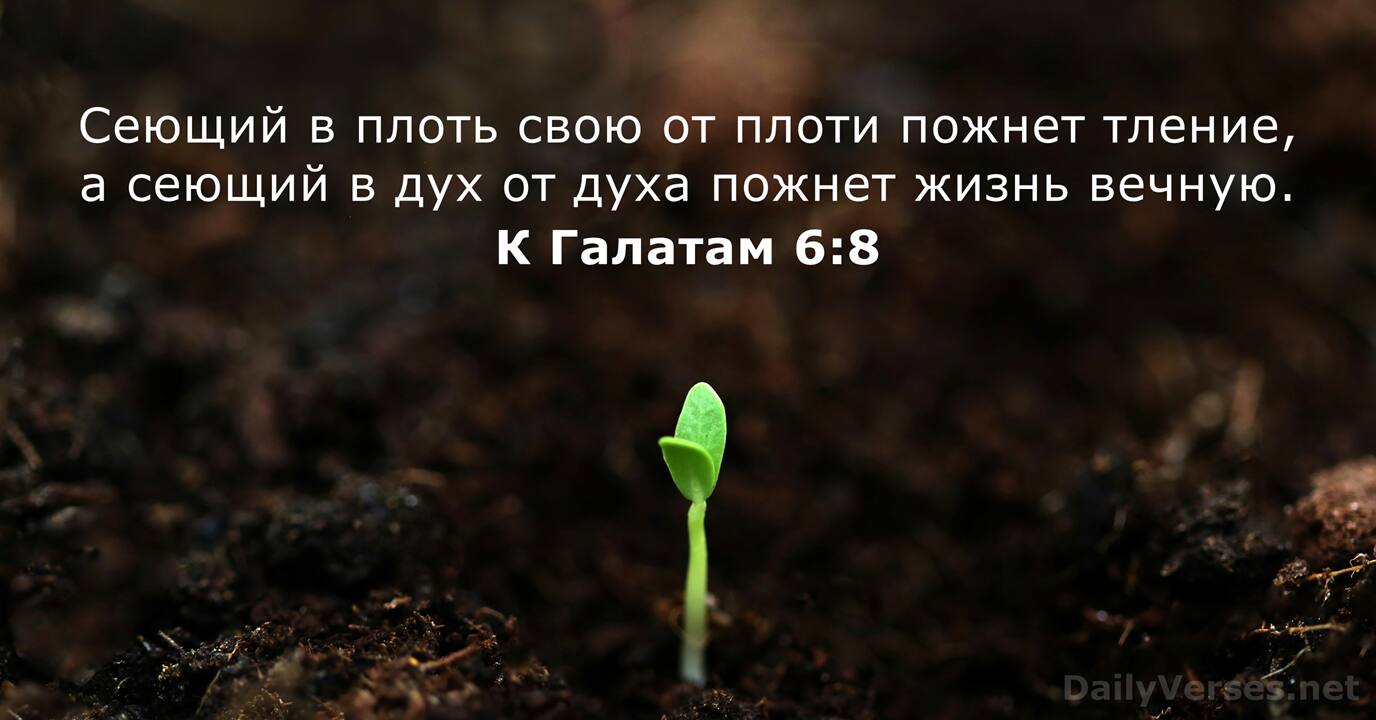 Сеющий в плоть свою от плоти пожнет тление, а сеющий в дух от духа пожнет жизнь вечную.