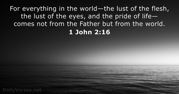 - For everything in the world—the lust of the flesh, the lust of the eyes, and the pride of life—comes not from the Father but from the world.