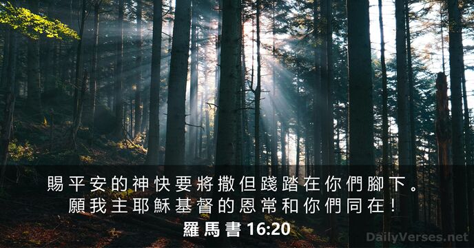賜 平 安 的 神 快 要 將 撒 但 踐 踏 在 你 們 腳 下 。 願 我 主 耶 穌 基 督 的 恩 常 和 你 們 同 在 !