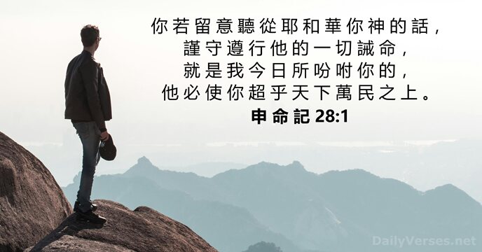 你 若 留 意 聽 從 耶 和 華 你 神 的 話 , 謹 守 遵 行 他 的 一 切 誡 命 , 就 是 我 今 日 所 吩 咐 你 的 , 他 必 使 你 超 乎 天 下 萬 民 之 上 。