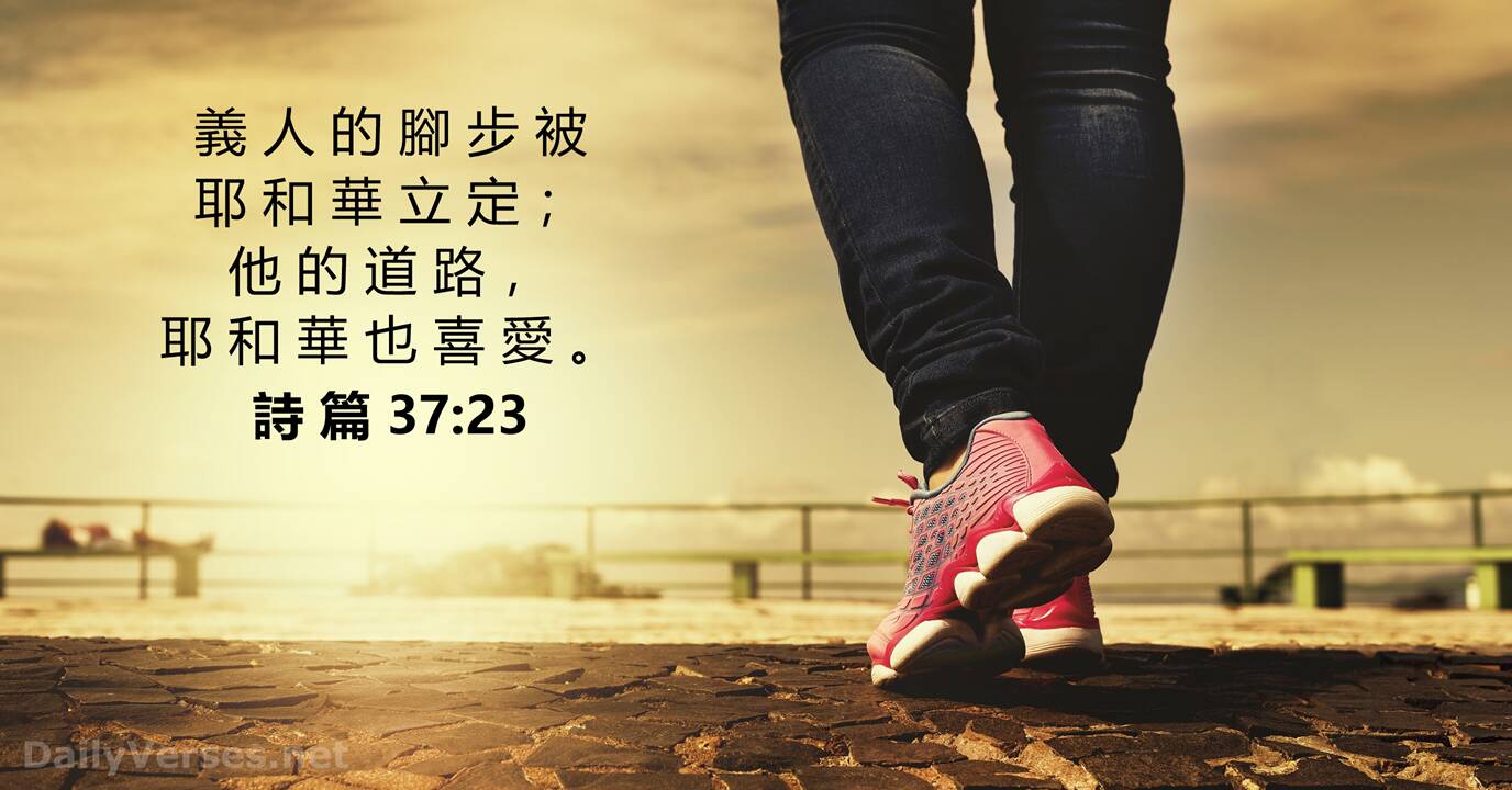 義 人 的 腳 步 被 耶 和 華 立 定 ; 他 的 道 路 , 耶 和 華 也 喜 愛 。
