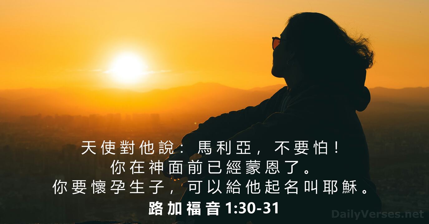 天 使 對 他 說 : 馬 利 亞 , 不 要 怕 ! 你 在 神 面 前 已 經 蒙 恩 了 。 你 要 懷 孕 生 子 , 可 以 給 他 起 名 叫 耶 穌 。