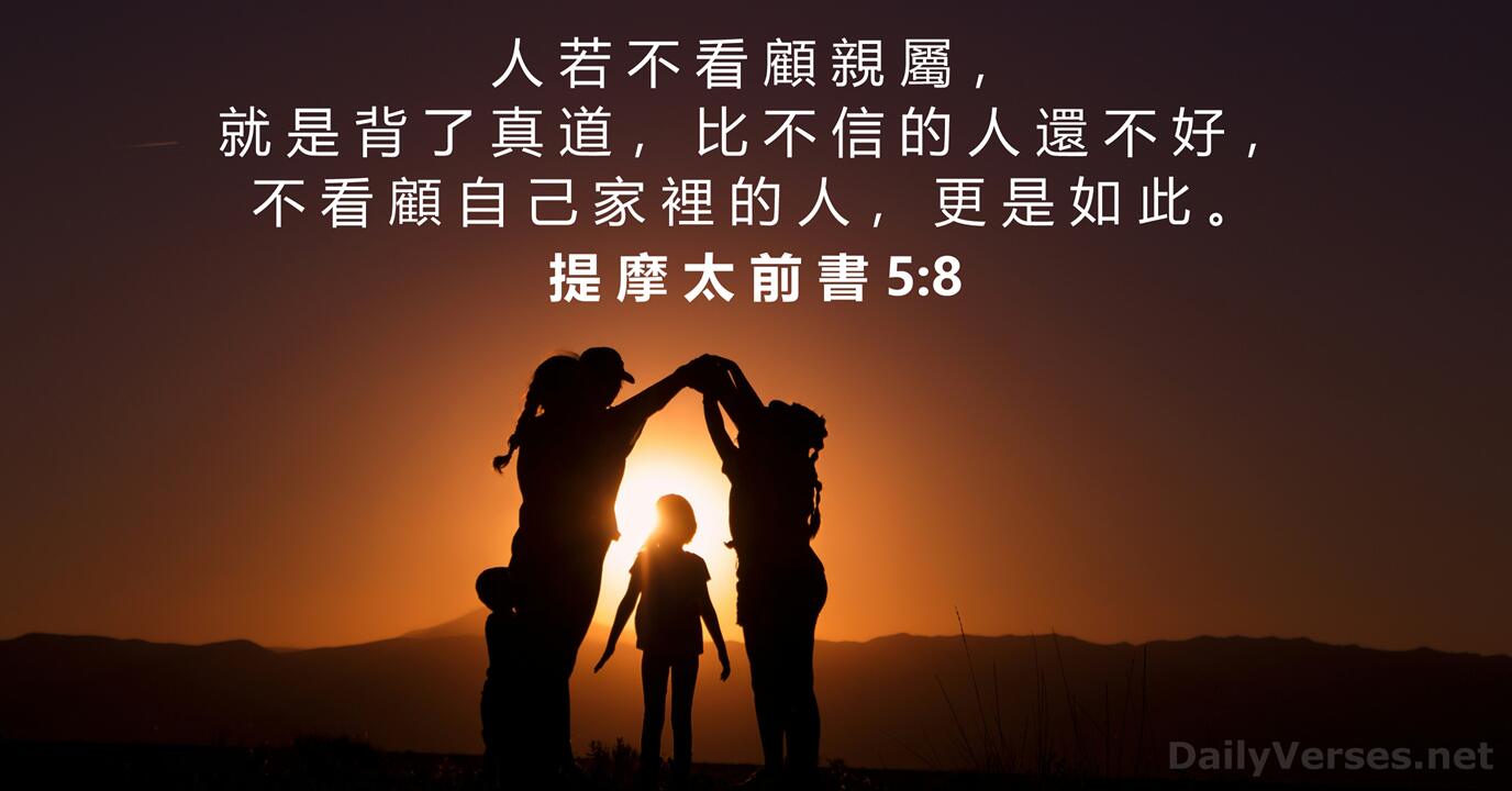 人 若 不 看 顧 親 屬 , 就 是 背 了 真 道 , 比 不 信 的 人 還 不 好 , 不 看 顧 自 己 家 裡 的 人 , 更 是 如 此 。