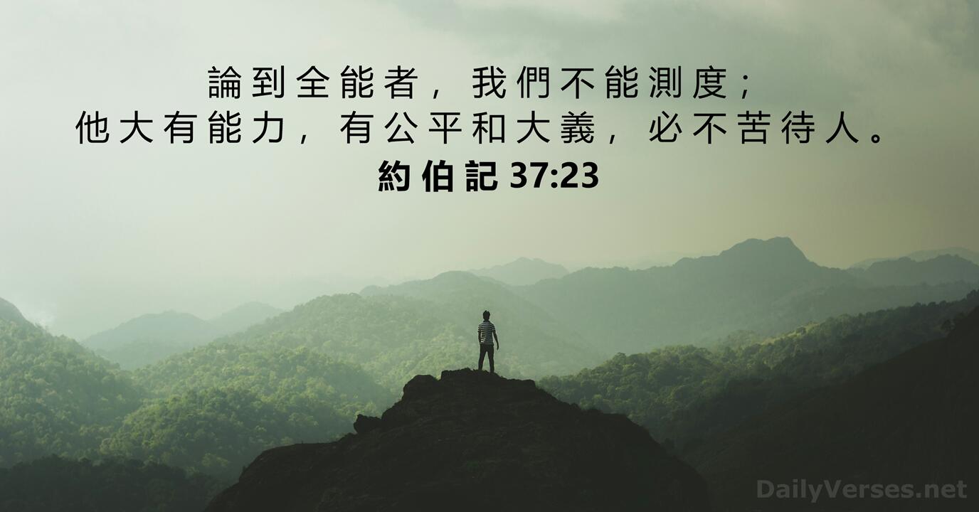 論 到 全 能 者 , 我 們 不 能 測 度 ; 他 大 有 能 力 , 有 公 平 和 大 義 , 必 不 苦 待 人 。 论 到 全 能 者 , 我 们 不 能 测 度 ; 他 大 有 能 力 , 有 公 平 和 大 义 , 必 不 苦 待 人 。 因 為 十 字 架 的 道 理 , 在 那 滅 亡 的 人 為 愚 拙 ; 在 我 們 得 救 的 人 , 卻 為 神 的 大 能 。 但 願 使 人 有 盼 望 的 神 , 因 信 將 諸 般 的 喜 樂 、 平 安 充 滿 你 們 的 心 , 使 你 們 藉 著 聖 靈 的 能 力 大 有 盼 望 。下一節!有圖片