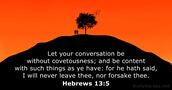 - Let your conversation be without covetousness; and be content with such things as ye have: for he hath said, I will never leave thee, nor forsake thee.