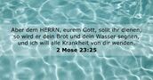 - Wirst du der Stimme des HERRN, deines Gottes, gehorchen und tun, was recht ist vor ihm, und merken auf seine Gebote und halten alle seine Gesetze, so will ich dir keine der Krankheiten auferlegen, die ich den Ägyptern auferlegt habe; denn ich bin der HERR, dein Arzt.