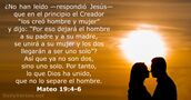 Por eso dejará el hombre a su padre y a su madre, se unirá a su mujer, y los dos llegarán a ser uno solo. - También tomó pan y, después de dar gracias, lo partió, se lo dio a ellos y dijo: —Esto es mi cuerpo, entregado por ustedes; hagan esto en memoria de mí.