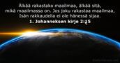hän, joka on luonut taivaan ja maan. - Rakkaat ystävät, jo nyt me olemme Jumalan lapsia, mutta vielä ei ole käynyt ilmi, mitä meistä tulee. Sen me tiedämme, että kun se käy ilmi, meistä tulee hänen kaltaisiaan, sillä me saamme nähdä hänet sellaisena kuin hän on. Jokainen, joka näin panee toivonsa häneen, pitää itsensä puhtaana, niin kuin hän on puhdas ja pyhä.