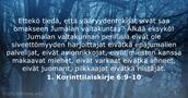aikansa joka asialla taivaan alla. - Älkää kootko itsellenne aarteita maan päälle. Täällä tekevät koi ja ruoste tuhojaan ja varkaat murtautuvat sisään ja varastavat. Kootkaa itsellenne aarteita taivaaseen. Siellä ei koi eikä ruoste tee tuhojaan eivätkä varkaat murtaudu sisään ja varasta.