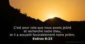 - Va rassembler tous les Juifs qui se trouvent à Suse et jeûnez pour moi! Ne mangez et ne buvez rien pendant trois jours, ni la nuit ni le jour. Moi aussi, je respecterai un tel jeûne avec mes servantes, et c’est dans ces dispositions que je pénétrerai chez le roi: j’enfreindrai la loi et, si je dois mourir, je mourrai.
