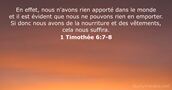 - En effet, nous n'avons rien apporté dans le monde et il est évident que nous ne pouvons rien en emporter. Si donc nous avons de la nourriture et des vêtements, cela nous suffira.