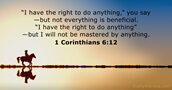 - “I have the right to do anything,” you say—but not everything is beneficial. “I have the right to do anything”—but I will not be mastered by anything.
